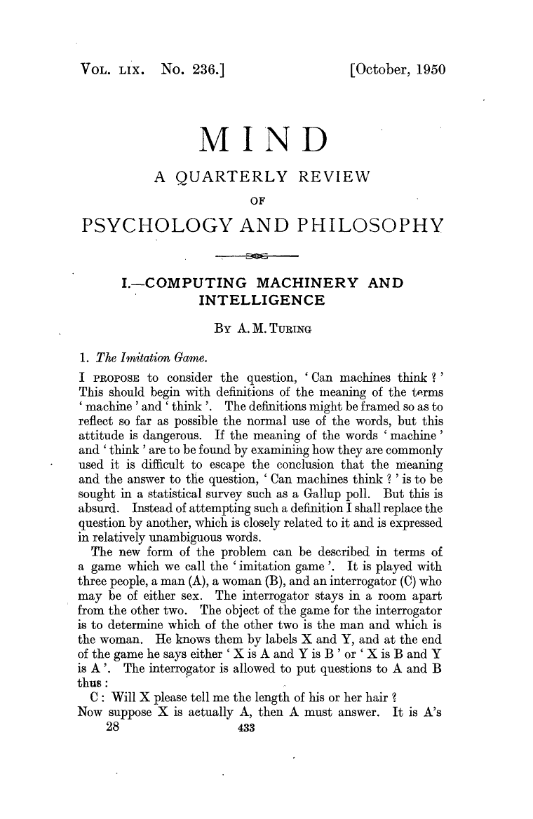 1950 年,Mind 杂志第 4 季度第 1 篇文章